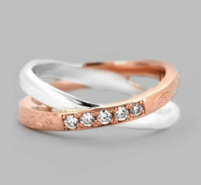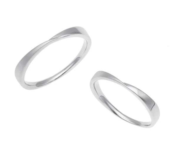 風をイメージした緩やかなライン。重なり合うデザインは愛し合う2人を表現。 | 男性:25,300円 女性:22,000円 |
