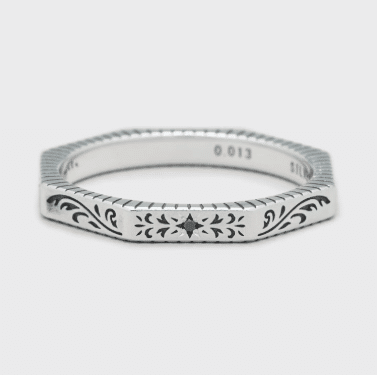 八角形の独特なデザイン。ダイヤモンドとその反対側にはブラックダイヤモンドが施されています。 | 男性:17,600円 女性:15,400円 |
